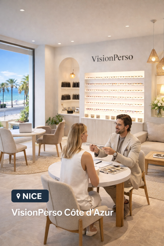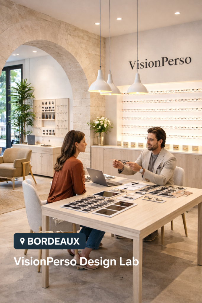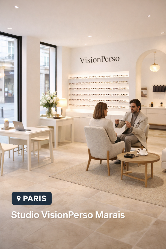 Sur rendez-vous, nos clients premium peuvent échanger avec un designer VisionPerso, tester des modèles et affiner leur monture dans un cadre élégant et minimaliste.